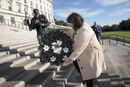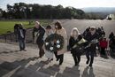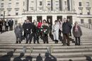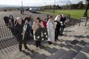 The 15th annual All Souls Silent Walk 2021 for the Disappeared on Tuesday 2nd November 2021 at the Stormont Estate in Belfast. Families and friends of the Disappeared gathered at Carson's statue. Anna McShane, daughter of Charlie Armstrong, Dympna Kerr, sister of Columba McVeigh, Noel Evans, brother of Gerry Evans spoke before the walk. Fr Joe Gormley led prayers before the families walked to the steps of Stormont. Dympna Kerr carried the wreath up to the steps of Parliament Buildings at Stormont.